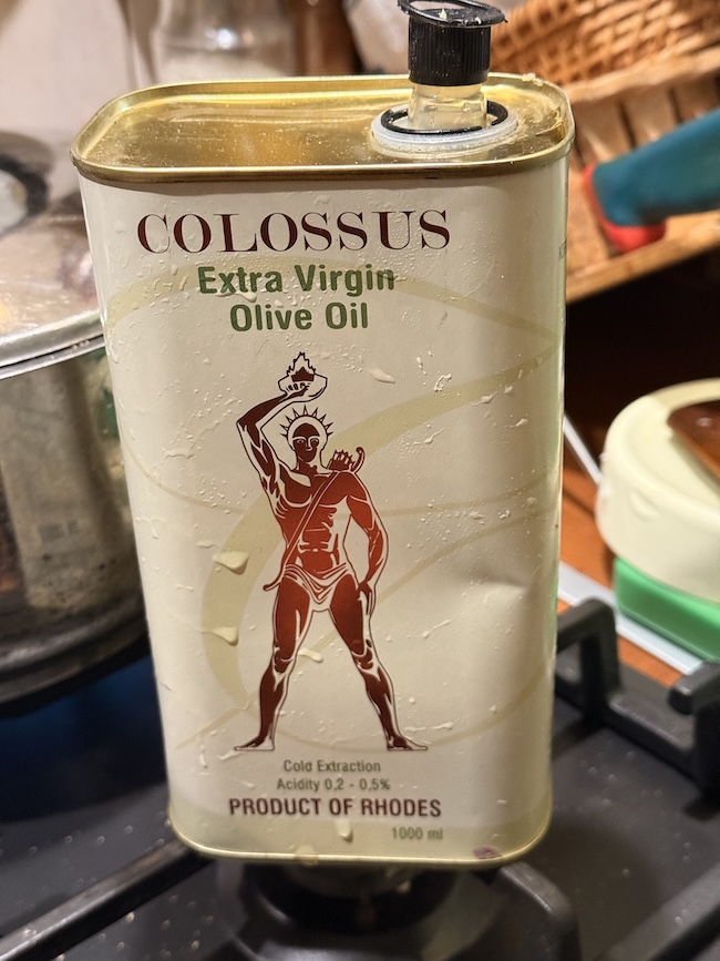 Za prženje sam koristio ekstra djevičansko maslinovo ulje sa Rodosa (kako sam ljubitelj maslinovih ulja ako putujem u maslinarsku zemlju obavezno donesem nekoliko limenki maslinovog ulja),