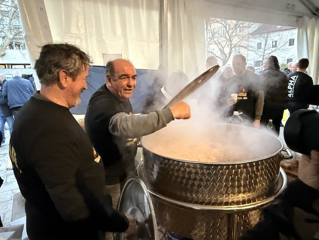 a tijekom kuhanja krijepili su se domaćim sinjskim prizvodima. Obratite pažnju i na krumpire iznad pive. O njima više malo kasnije.