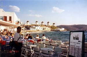 Kad upoznate MIKONOS, prvo dobijete potrebu da nazovete našeg aktualnog ministra turizma i pozovete ga ovamo da vidi kako treba izgledati taj "turizam"... MIKONOS nema ništa što nemamo i mi, što više, Jadran je još ljepši od grčkih mora. Mjesta su nam, u biti slična. Grčka mjesna infrastruktura je skromna. Nema nikakvih basnoslovnih atrakcija. Grčka na Cikladama ima samo svoje prekrasne, blistavo bijele i nevjerojatno čiste gradiće s karakterističnom kockastom arhitekturom i svoje marljive, nevjerojatno srdačne stanovnike, kojima je turist stvarno najdraži gost, a ne antipatični, glupi furešt, kao kod nas. Mikonos je perjanica otočkog turizma. Cijeli je pretvoren u turizam. Sve uličice cijeloga gradića su turizam. Gdje žive i spavaju mještani - nije jasno, jer doslovce svaka kuća u prizemlju ima neki lokalčić ili dučančić, a na katu su sobe za iznajmljivanje. Ipak, i tako 100% ponuđen turistima, dupkom je pun; mjesta nema "ni za lijek"! Pritisak turista je tolik da mnogi spavaju u vrećama na pijesku plaže, čekajući da im se nekim čudom pronađe slobodni krevet !