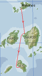 Savjet za Vas: Do Grčke( i natrag) može se vrlo jeftino stići i trajektima, a ne samo (skupim) avio-prijevozom. Od svih kompanija, prema našem iskustvu je najisplativije koristiti "ANEK LINES" koja saobraća svakodnevno izmedu Trsta i Patrasa, uz međupristajanja u Jonskom moru. Od Patrasa stalno voze (jeftini i brzi) autobusi do Pireja, a odatle polaze sve egejske brodske linije. Iako ovakav transfer ukupno traje oko 3 dana, mnogi, a narocito mladi, vole ga zbog druženja i doživljaja... Ako ste mladi i kanite u Grckoj mijenjati posadu, dobro je znati i za tu "trajektnu mogucnost". Ostavši bez pola posade, "Sing-Sing" je zaplovio dalje na jug... prema Naxosu i Iosu...Zašto "zaplovio" a ne "zajedrio"? Zato što je meltemi odjednom utihnuo, gotovo nestao. Razmotali smo našu jadransku veliku genovu, na koju smo u Grčkoj gotovo zaboravili! I gle čuda: do tada prazno obzorje, gdje danima nismo vidjeli ni jedno jedro, sada se je odjednom zabijelilo od brojnih nautičara, koji će ovo zatišje iskoristiti da se što ugodnije prebace do neke svoje slijedeće destinacije.
