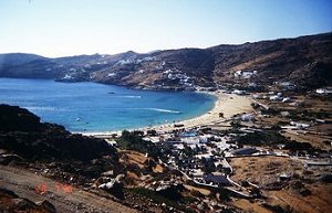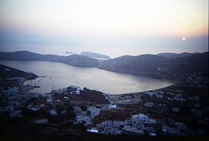 Na svim otocima Ciklada samo su luke dolje; mjesto se naziva "Chora" i od starine je povučeno gore, u brda. (Razlog: gusari!) Mladenački Ios stoga sav živi gore, u Chori, a dolje ide samo na kupanje... |