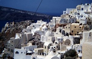 Foto-prizori koji se ukazuju na Thiri, oduzimaju dah: crno vulkansko stijenje, blještavo bijeli zidovi, modre kupole, nebo i more... Bio bi to «kič», da nije zbilja! |