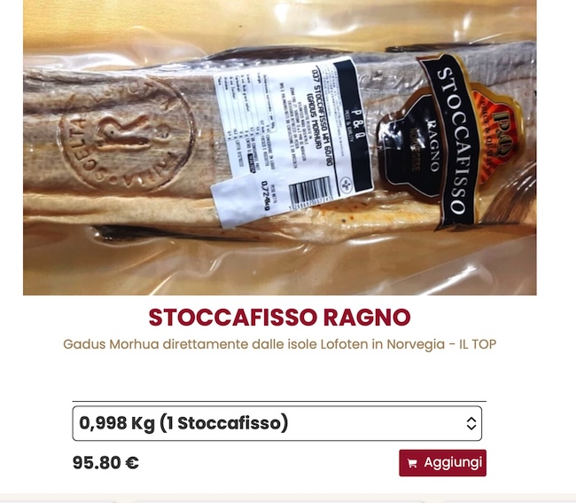 na talijanskoj stranici za on-line prodaju delicija Distinti Salumi, jedan dio je posvećen bakalaru, kako suhom norveškom, tako i soljenom norveškom i islandskom.