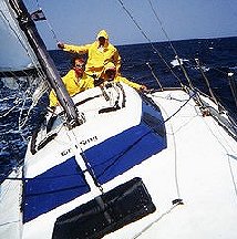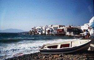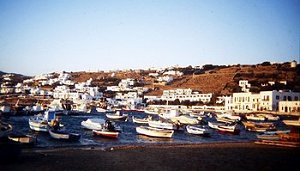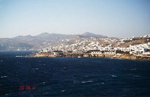 Svaka zemlja, a naročito turistička, ima neko svoje mjesto koje je turistički SIMBOLIZIRA. U Hrvatskoj je to nesumnjivo DUBROVNIK. A u Grčkoj? MIKONOS! I tako smo mi odlučili još za vrijeme priprema, da će nam krajnji cilj naše prve grčke traversade biti upravo Mikonos. Nakon što smo se temeljito odmorili na posljednjem našem sidrištu (ispred Syrosa, u zavjetrini otočića Gaidarosa), navukli smo svoja nepropusna žuta odijela od 20.- DM (!) i hrabro se bacili u MELTEMI koji je tog dana, kao za vraga, odlučio pokazati što zna i može ! Unatoč visokoj sezoni - putem nismo vidjeli niti jedno drugo jedro; svi ostali bili su pametniji od nas i "jedrili" su po tavernama okolnih otoka...