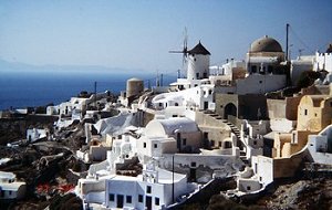 Foto-prizori koji se ukazuju na Thiri, oduzimaju dah: crno vulkansko stijenje, blještavo bijeli zidovi, modre kupole, nebo i more... Bio bi to «kič», da nije zbilja! |