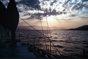Poslije MILOSA, čekalo me je 15 sati krasnog jedrenja u orcu, po umjerenom (6 BF) meltemiju. Zalijevanje preko pramca, bilo je fantastično. U brod kroz bokaportu, koju sam ovaj put propustio dodatno zabrtviti, ulazile su impozantne količine mora! U unutrašnjosti broda - poplava. No, takve stvari me više ne uzrujavaju... U HIDRU, nautičko-turistički raj uz poluotok PELOPONEZ, stižem predvečer; luka mala, skučena, pretrpana (vežem se u 2. redu), ali mjesto slikovito! Nema bijelih kockastih kuća bez krova...ovo više nisu CIKLADE, ovdje vlada ista mediteranska arhitektura kao i u nas, u Dalmaciji.