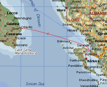 Dani ugodnog ljenčarenja i skitnje po Jonskim otocima brzo su prošli. Sačekali smo da protutnji jedan noćni neverin i odmah za njim, točno u ponoć isplovili smo iz gradske luke KRFA, obavivši brzo potrebne izlazne formalnosti tik prije isplovljenja. SING-SING je potpuno spreman: motor je servisiran, ulje zamijenjeno, ventili podešeni, gorivo tankirano... čak je i novi regler (donio ga Stipe) montiran i sada ne bi smjeli imati problema sa strujom. Uskoro plovimo uskim koridorom kroz mrklu noć: lijevo svjetleća plutača (grebeni!) desno nevidljiva albanska morska granica, a ispred i iza nas po istom uskom tragu hitaju ogromni trajekti - divovi. Čak pet ih je isplovilo iz KRFA te ponoći! Držimo se naših instrumenata, pratimo kartu i lociramo pojedine svjetionike. Odahnuo sam tek kada smo se dokopali otvorenog mora, doduše bez vjetra, ali s dosta zaostalih valova. Čekamo zoru, brodeći motorom ka BRINDISIJU i ITALIJI.