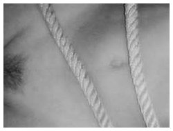 Bio je daleko, dovoljno daleko da ga ne mogu, moleći ga da se malo približi, a onda se u svojoj nemoći, jer bio je tvrdoglav, sjetim konopa, krajeva konopa. Zagrizem, povučem jedan kraj, hvatajući ga za kurac, dovlačeći ga do sebe. Ne ispuštajući ga iz ruke, zubima povučem i drugi konop, hvatajući ga za muda, gurajući ga s obje ruke u sebe…